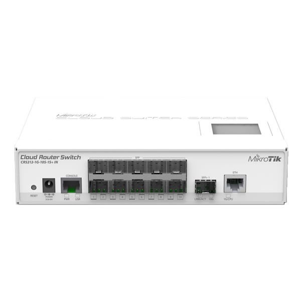 MikroTik Cloud Router 1x Gigabit port 10x SFP 1X SFP+ Layer3 Switch (fiber and wireless enabled, desktop case). Mikrotik CRS212-1G-10S-1S+IN Cloud Router 1xGigabit port 10xSFP port 1xSFP+ port Layer 3 Switch